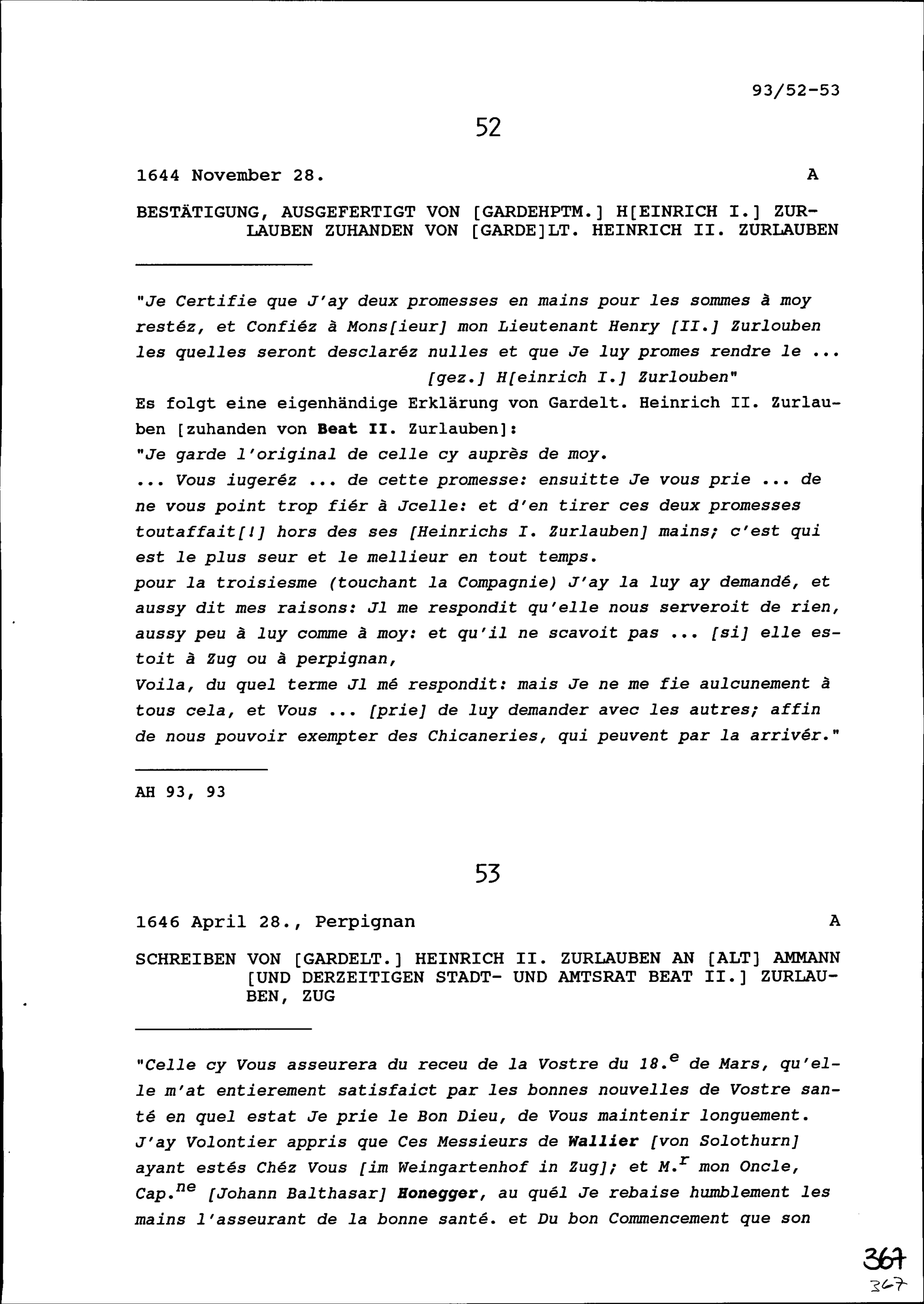 Schreiben von Heinrich II. Zurlauben, Gardeleutnant, an Beat II. Zurlauben, Altammann...