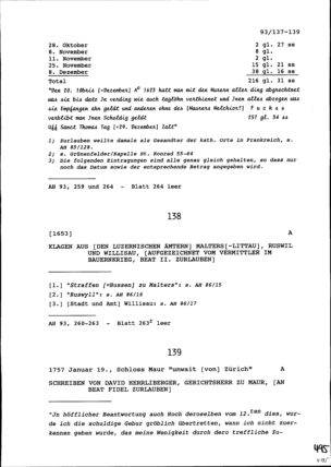 Abrechnung der Maurer mit Eva Zürcher, Gattin des Auftraggebers Konrad III. Zurlauben,...
