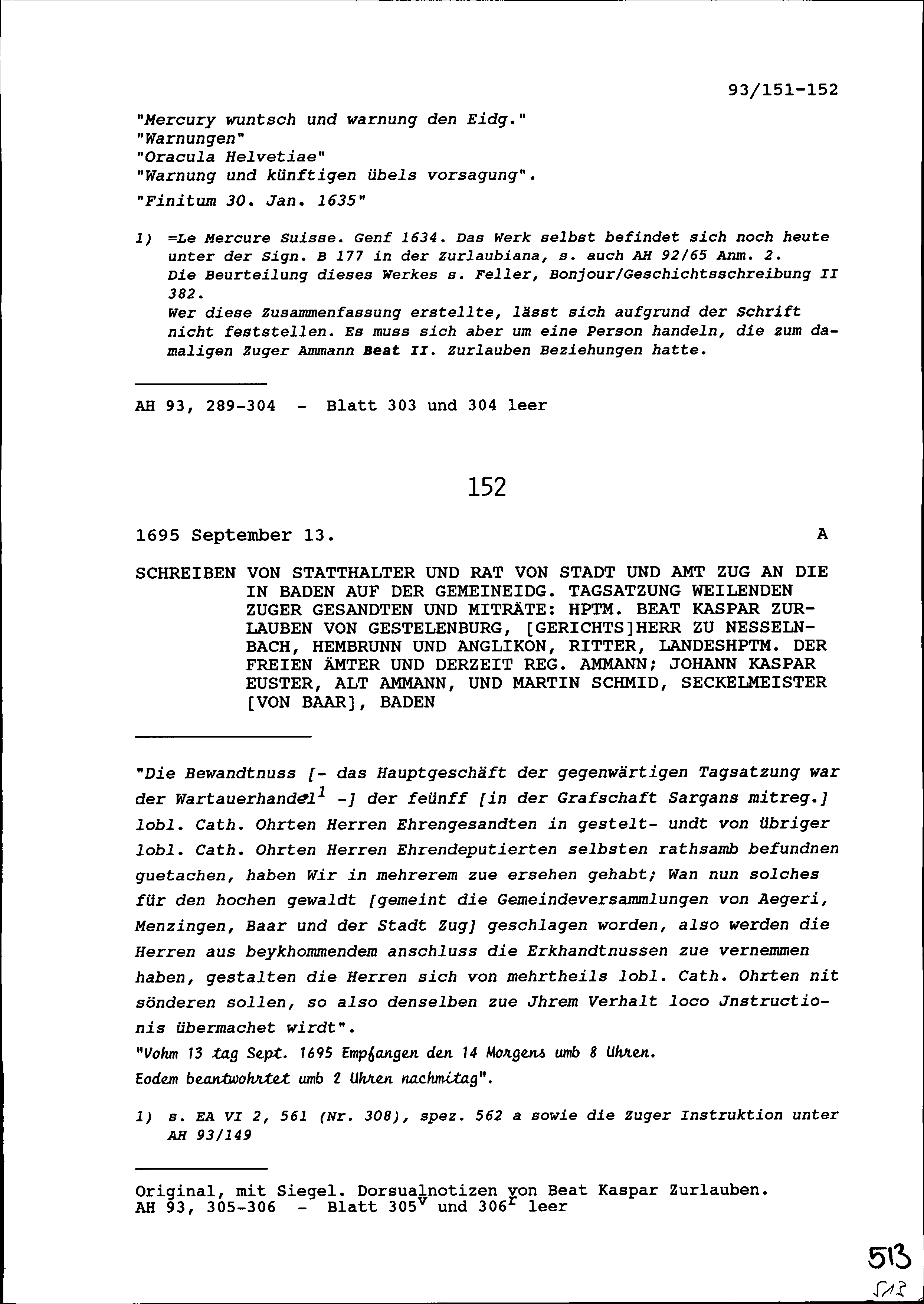Publikation: Le Mercure Suisse. Genf 1634 und ins Deutsche übersetzt (Auszug)