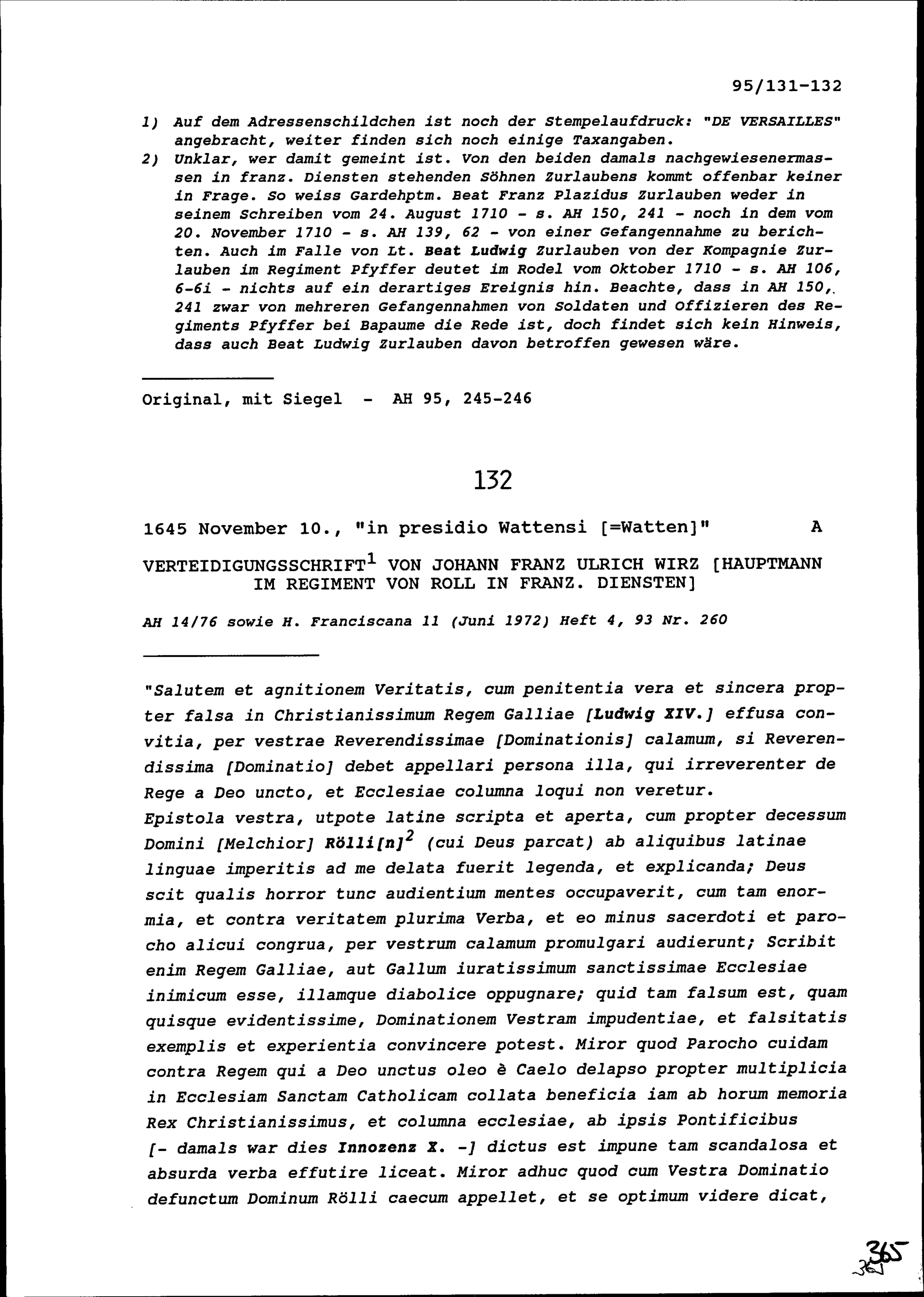 Schreiben von Louis-Auguste de Bourbon, Duc du Maine, Kommandant des Regiments der Schweizer und Bündner Garden, an Beat Jakob II. Zurlauben, Altammann und Stadt- und Amtrat, Zug