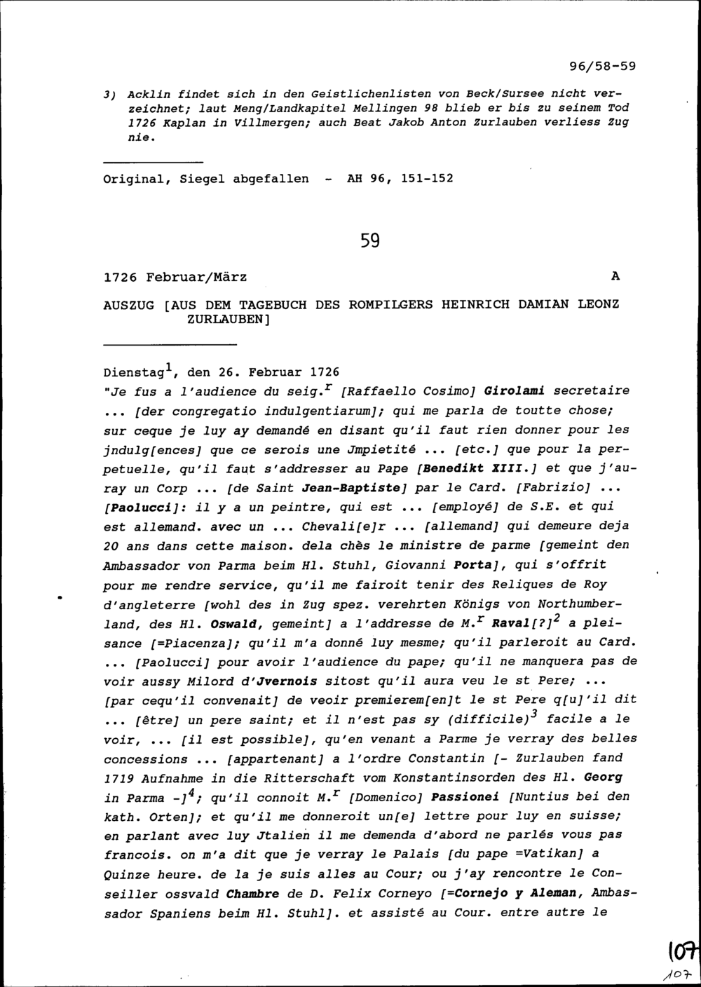 Schreiben von Gabriel Meyer, Konventuale, an Beat Jakob Anton Zurlauben, Priester, Zug