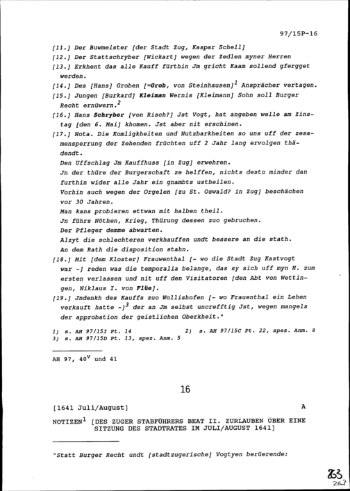 Notiz von Beat II. Zurlauben, Stabführer der Stadt Zug, über die Sitzung des Stadtrats vom 2. Mai 1642