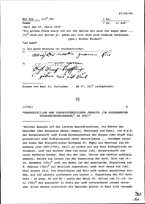 Rechnung für Euphemia Honegger, Gattin von Beat II. Zurlauben, ausgestellt von Michael Wickart, Zuger Tuchhändler