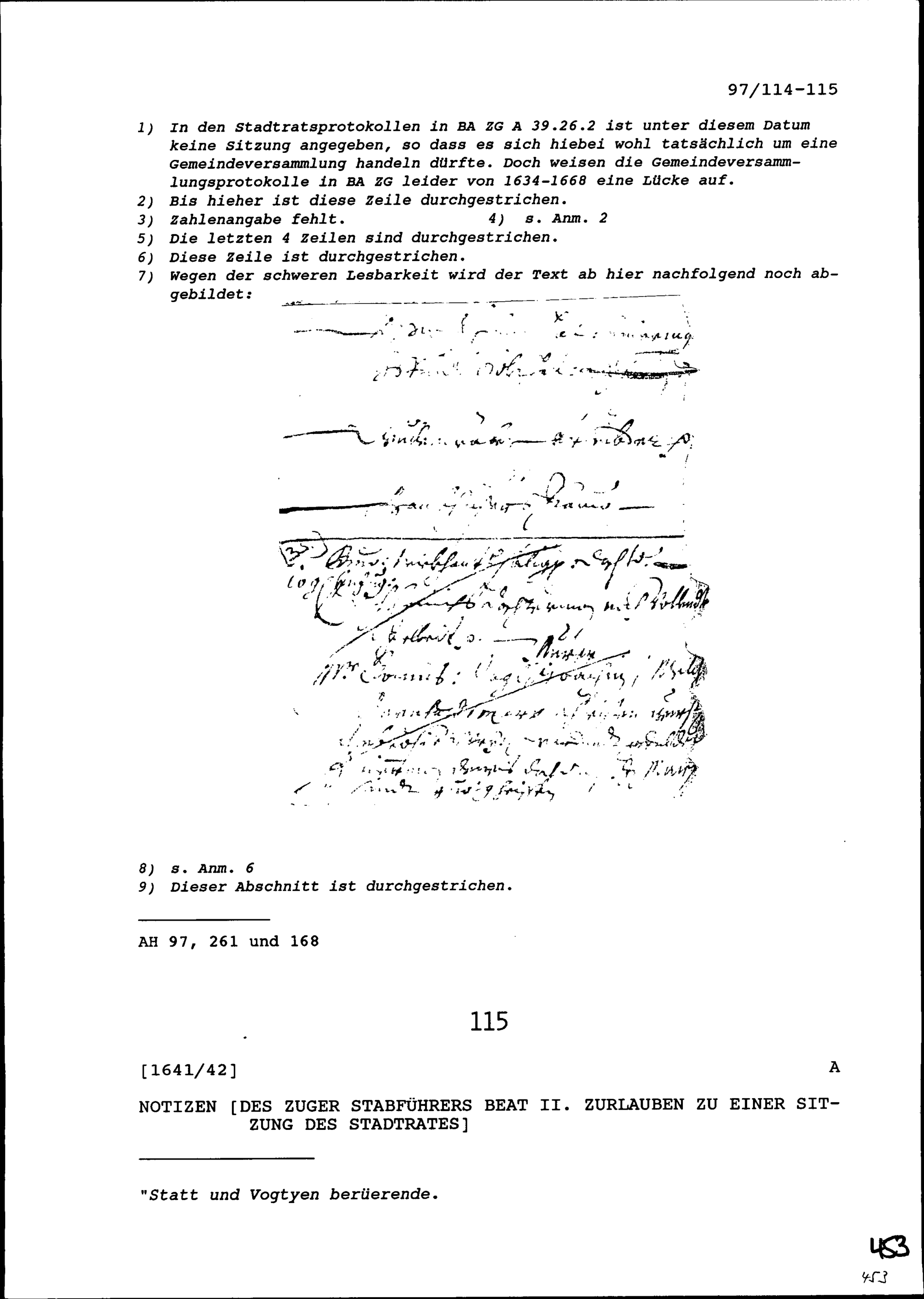 Notiz von Beat II. Zurlauben, Stabführer der Stadt Zug, über die Gemeindeversammlung der Stadt Zug vom 10. Januar 1642
