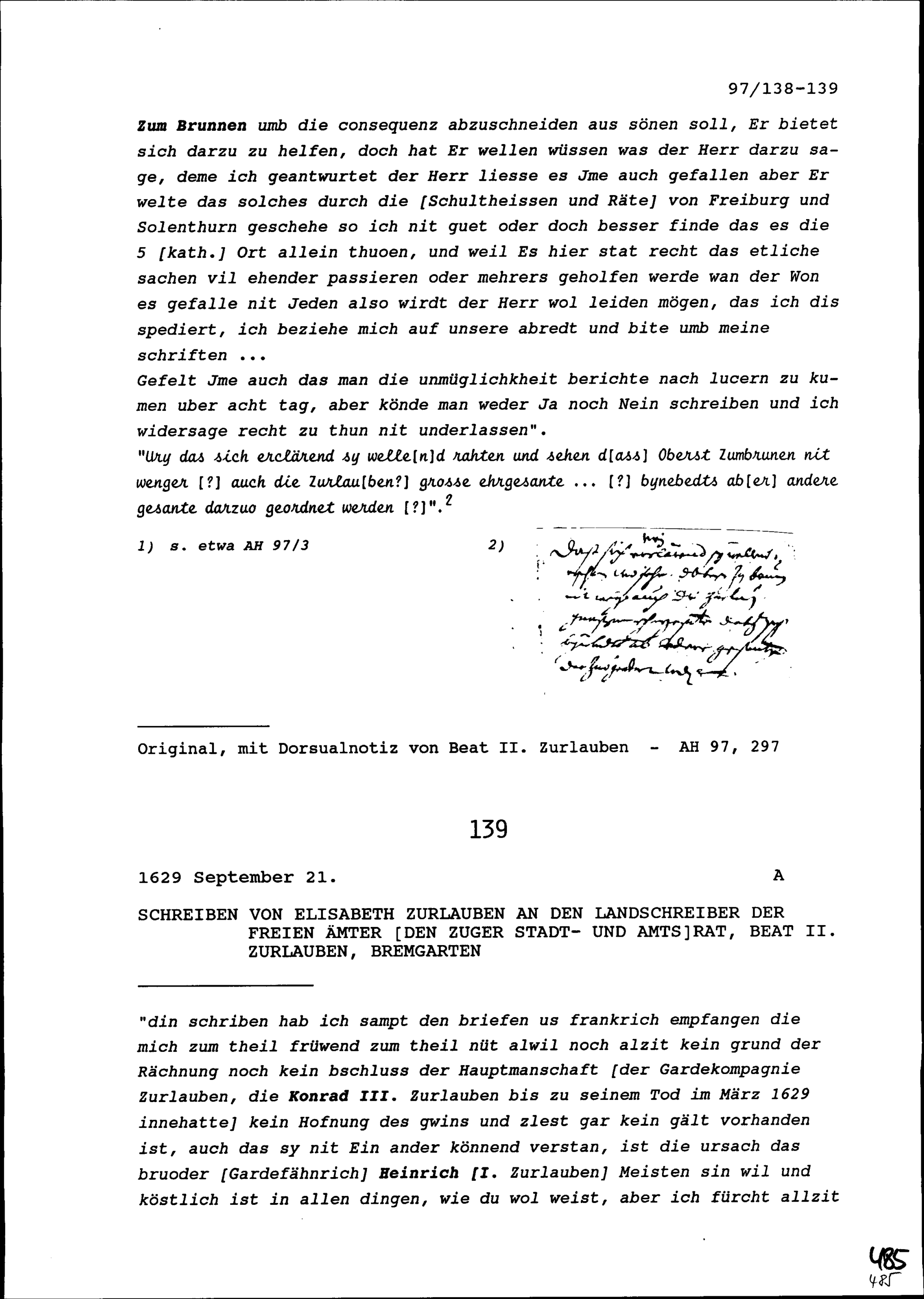 Schreiben von Sebastian Peregrin Zwyer, Landrat Uri, an Beat II. Zurlauben, Ammann von Stadt und Amt Zug,