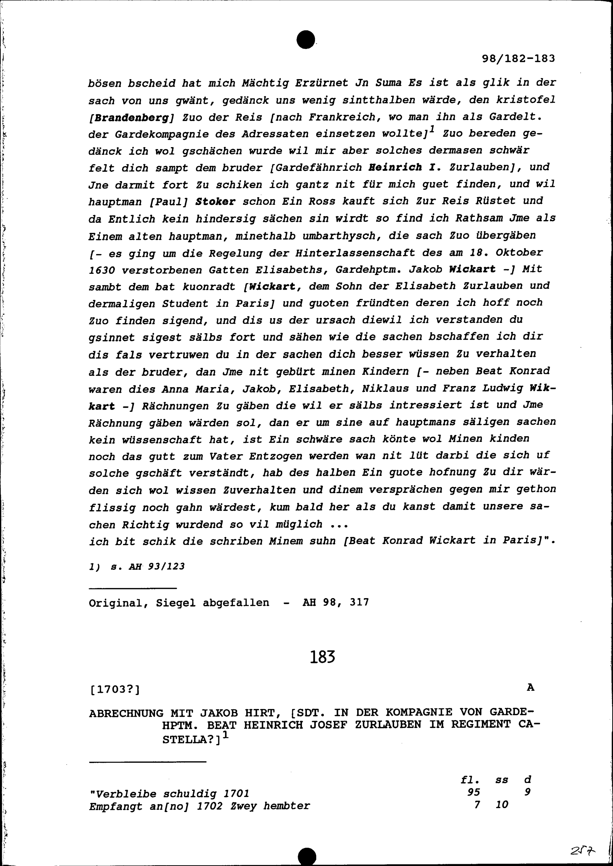 Schreiben von Elisabeth Zurlauben an Beat II. Zurlauben, Stadt- und Amtrat Zug und noch Landschreiber der Freien Ämter, Bremgarten