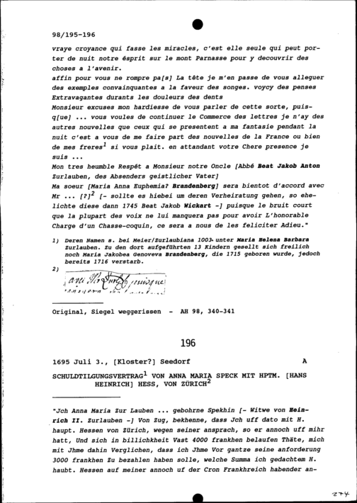 Schreiben von Gerold Brandenberg, Konventuale, an Beat Fidel Zurlauben, Hauptmann,...