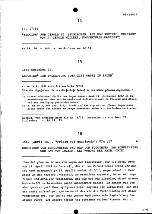 Abschied der Tagsatzung der Dreizehn Orte zu Baden