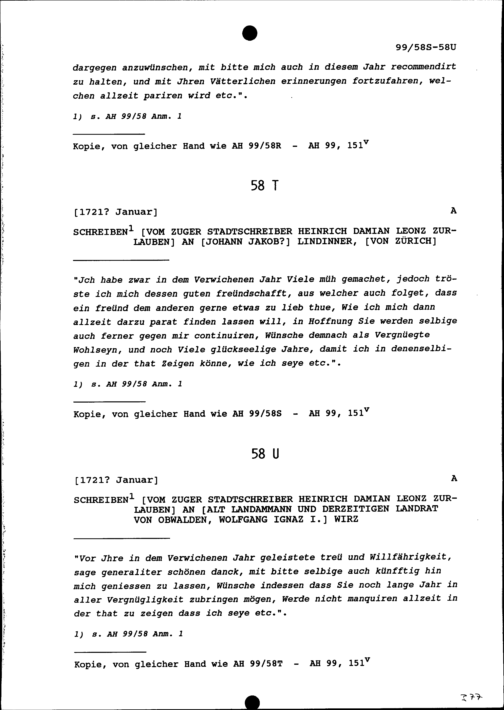 Schreiben von Heinrich Damian Leonz Zurlauben, Zuger Stadtschreiber, an Laurent Corentin...