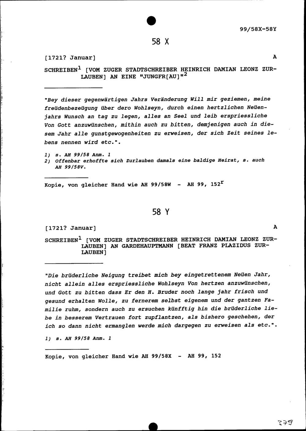 Schreiben von Heinrich Damian Leonz Zurlauben, Zuger Stadtschreiber, an Beat Franz Plazidus Zurlauben, Gardehauptmann