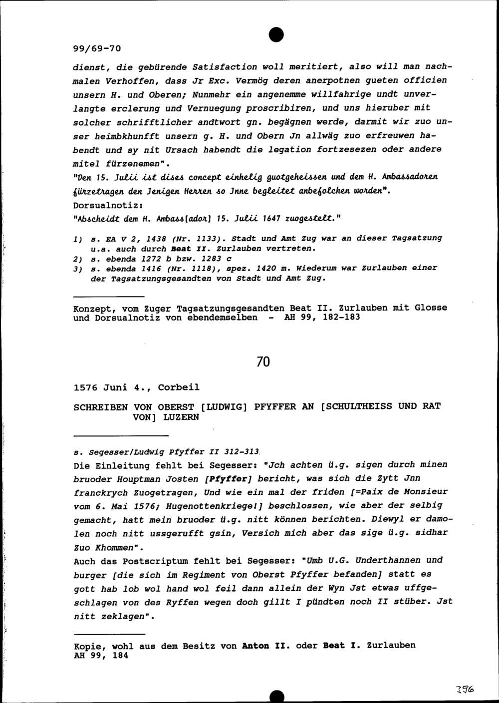 Dekret der Tagsatzungsgesandten auf der vom 7. bis 27. Juli 1647 stattfindenden Jahrrechnung in Baden zuhanden Jacques Le Fèvre de Caumartin, Ambassador von Frankreich