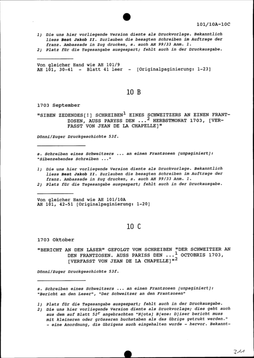 Druck: Jean de La Chapelle: Schreiben eines Schweitzers, der sich in Franckreich auffhaltet, an einen Frantzosen, welcher in der Schweitz sich gesetzt hat. [S.l.], 1704, Sechszehntes Schreiben