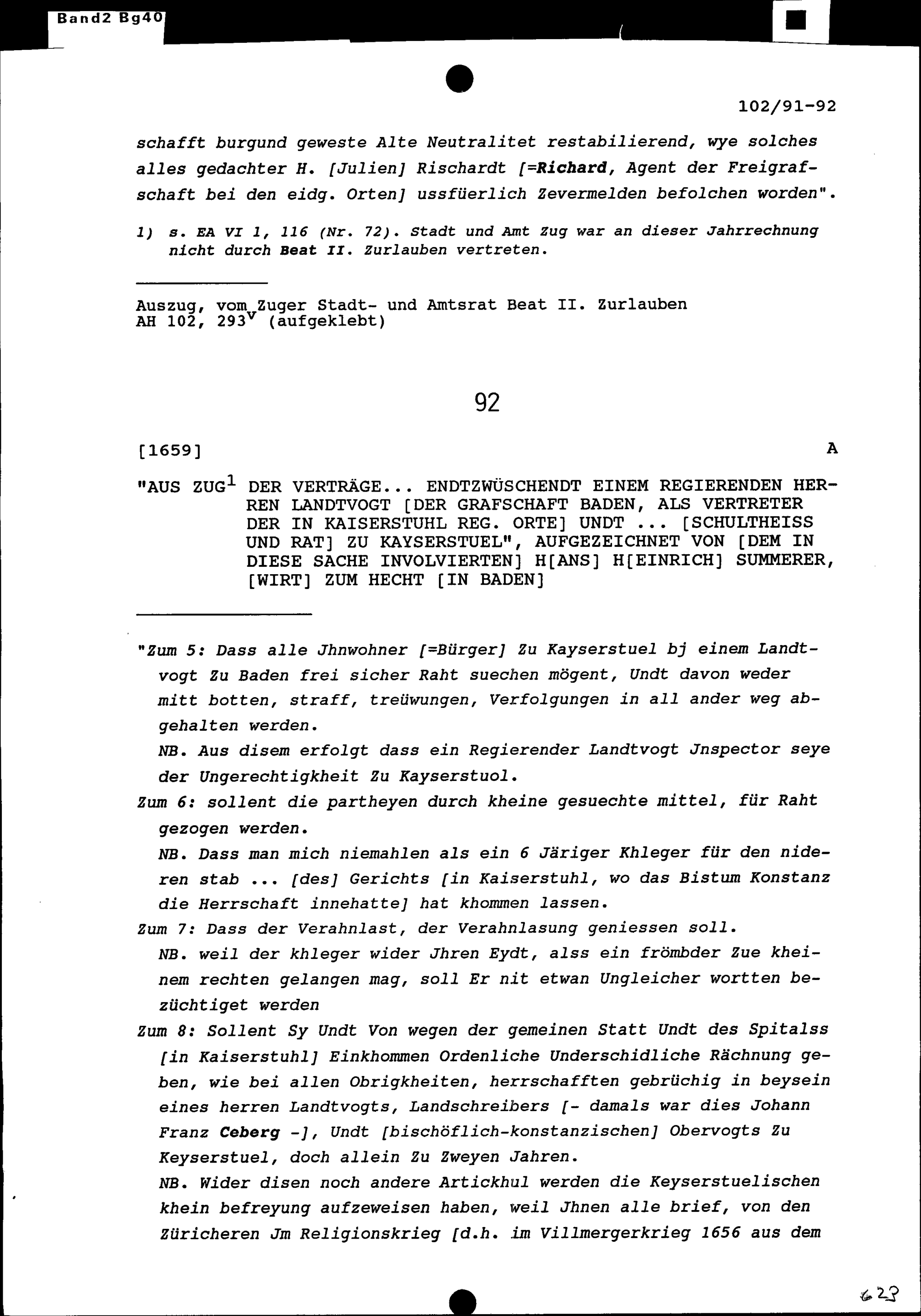 Abschied der am 7. Juli 1652 begonnenen Jahrrechnung in Baden