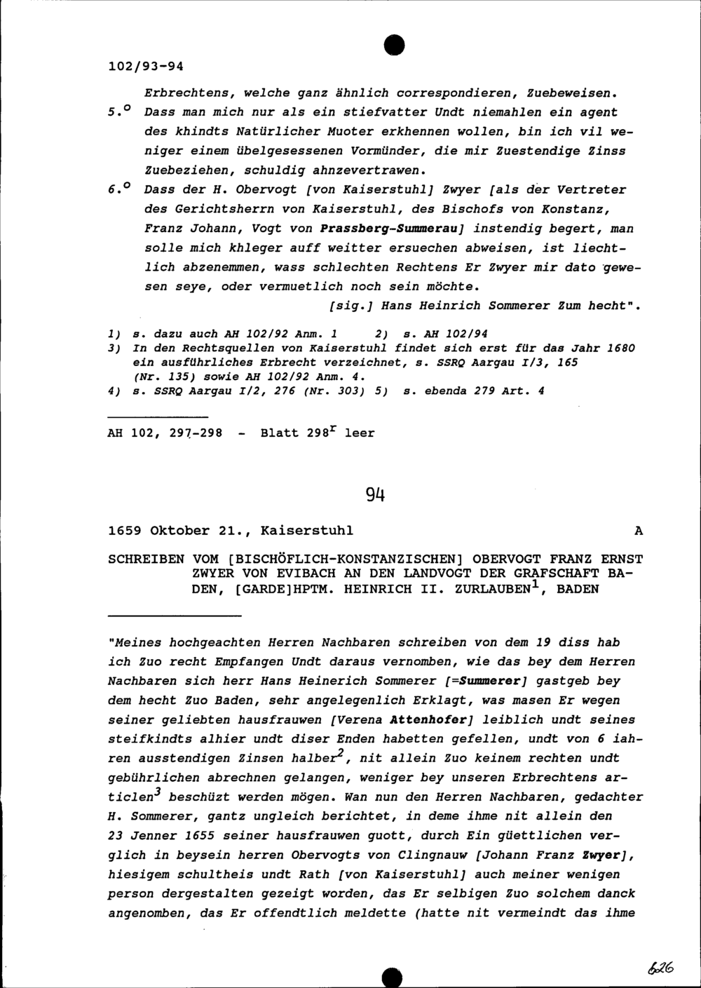 Replik über die Antwort an Heinrich II. Zurlauben, Landvogt der Grafschaft Baden, von Franz Ernst Zwyer zu Kaiserstuhl, bischöflich-konstanzischer Obervogt, aufgezeichnet von Hans Heinrich Summerer, Wirt zum Hecht, Baden
