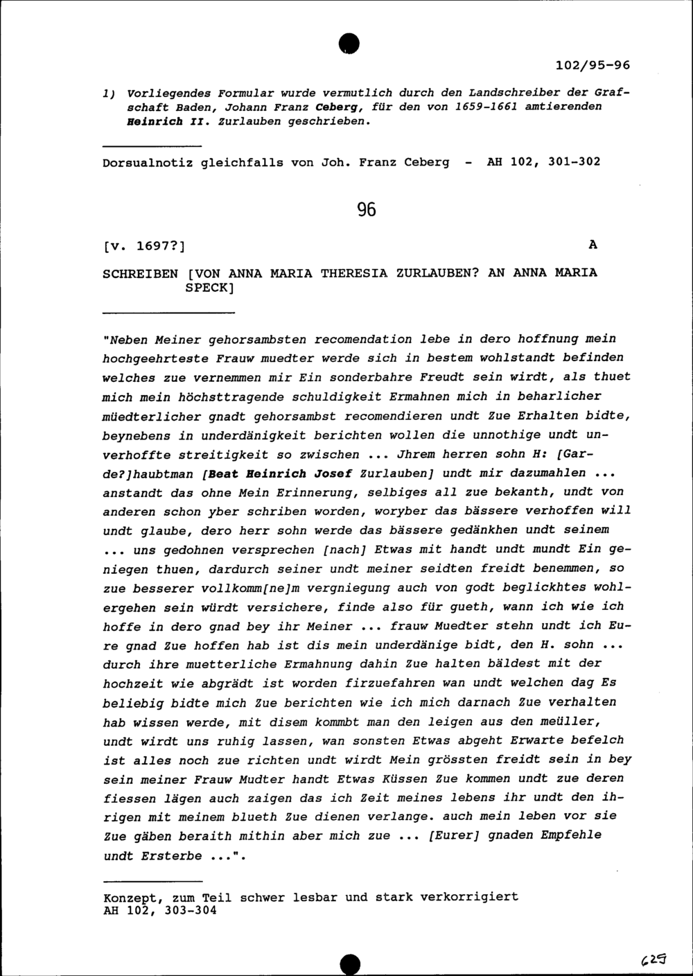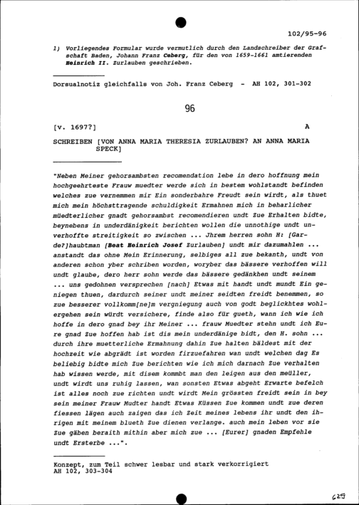 Formular bezüglich der Einsetzung neuer Pfrundinhaber am Stift Zurzach durch den Landvogt von Baden als Vertreter der Schirmorte