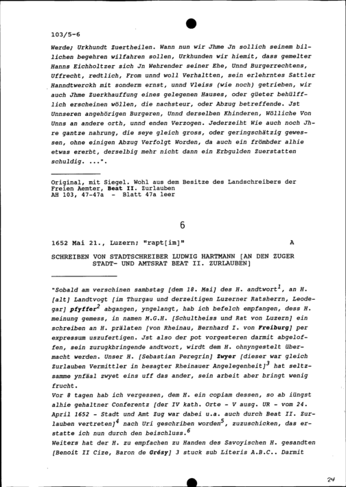 Bestätigung der Reichsstadt Kaysersberg für ihren Mitbürger Hans Eichholzer, Sattler