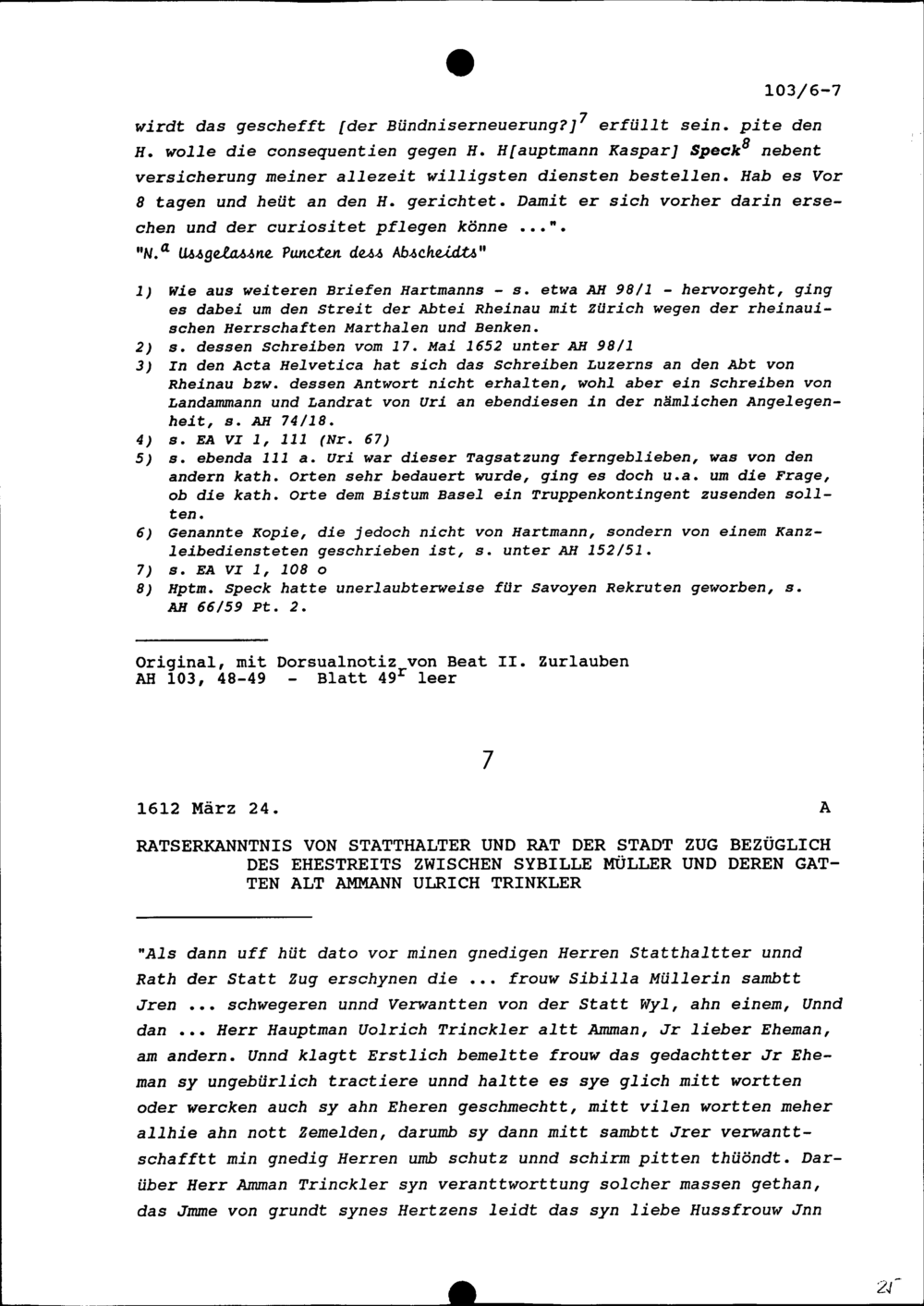 Schreiben von Ludwig Hartmann, Stadtschreiber, an Beat II. Zurlauben, Stadt- und Amtrat Zug