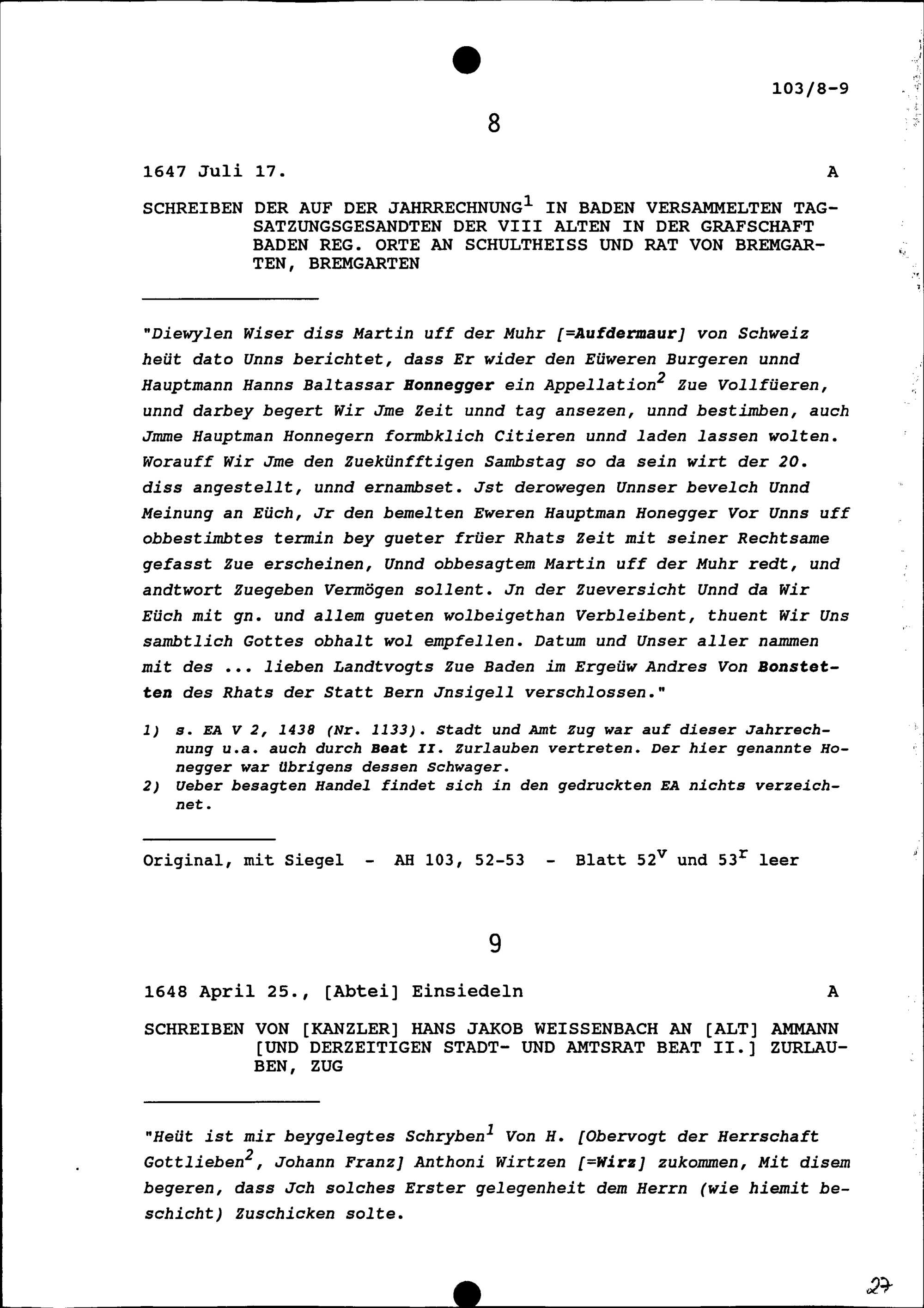 Schreiben von Hans Jakob Weissenbach, Kanzler, an Beat II. Zurlauben, Altammann und Stadt- und Amtrat, Zug