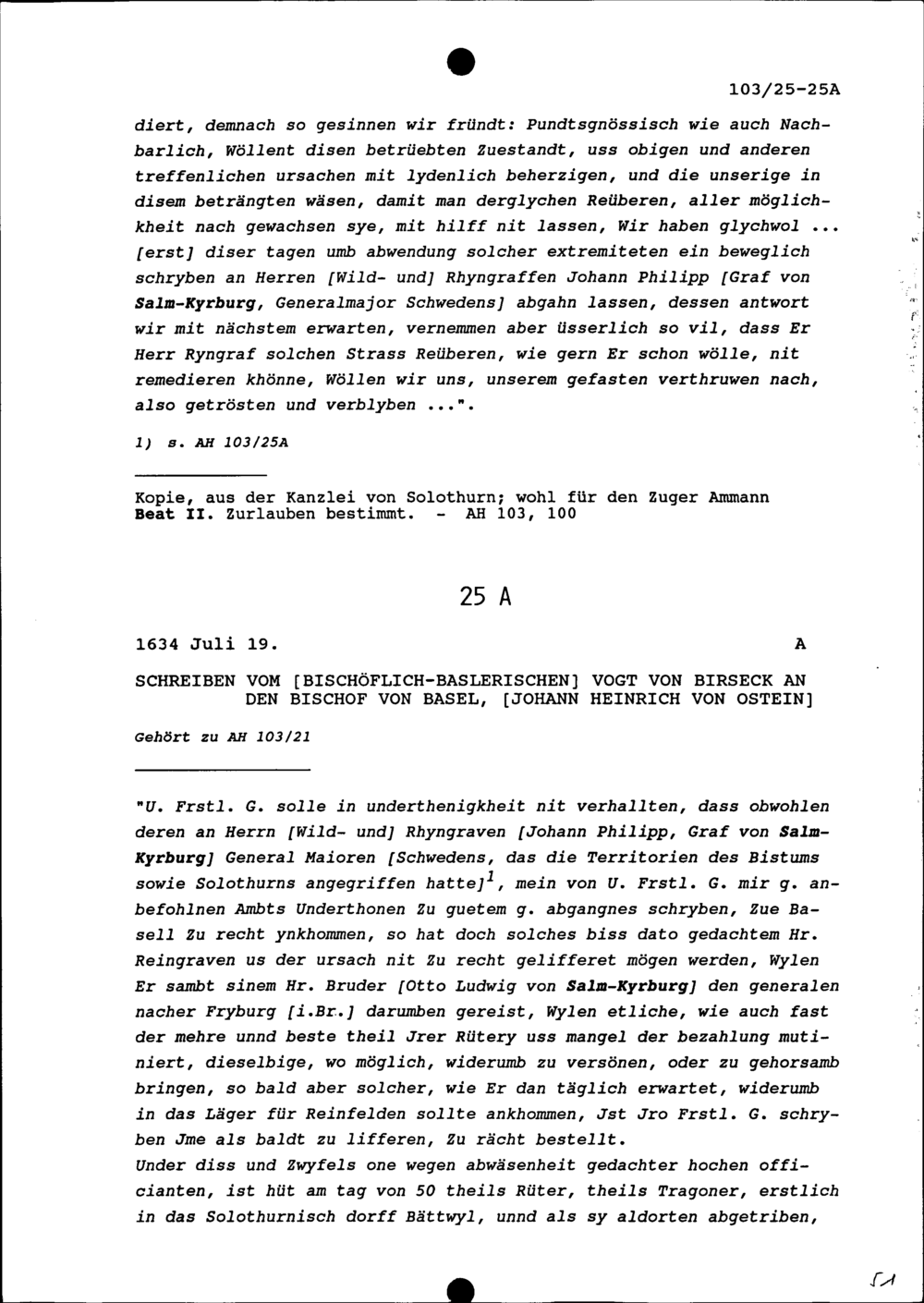 Schreiben von Johann Heinrich von Ostein, Bischof von Basel, an Schultheiss und Rat...