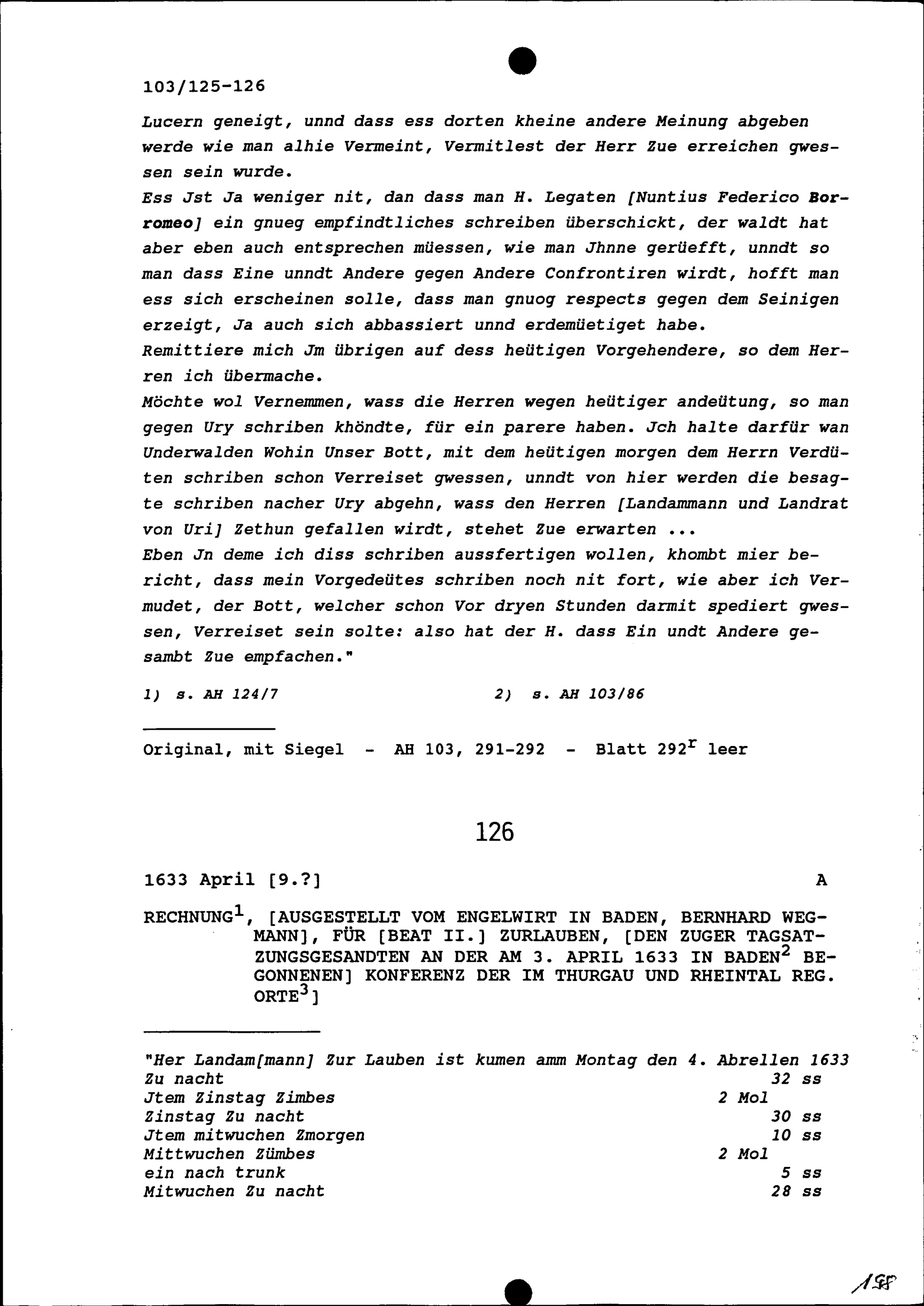 Schreiben von Paul Ceberg, Landschreiber, an Beat II. Zurlauben, Altammann und Stadt-...