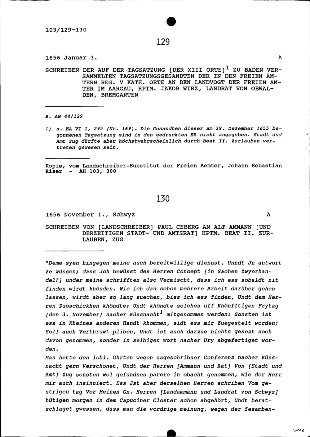 Schreiben von Paul Ceberg, Landschreiber, an Beat II. Zurlauben, Hauptmann und Stadt- und Amtrat, Zug