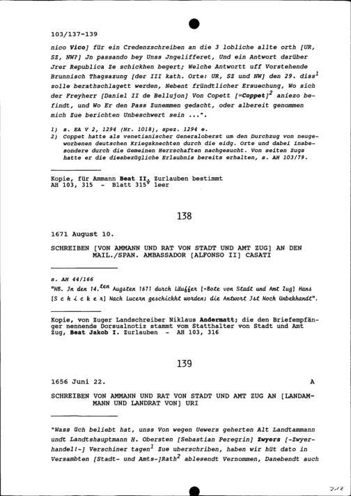 Schreiben des Ammanns und Rats von Stadt und Amt Zug an Landammann und Landrat U...