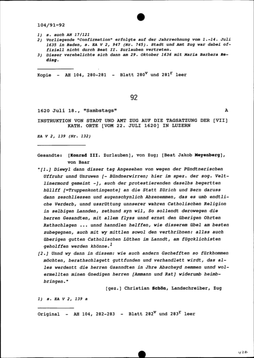 Erklärung, abgegeben von den in den Freien Ämter regierenden Sieben Orten für Beat II. Zurlauben, seinen Sohn Beat Jakob I. Zurlauben als neuen Landschreiber und Johann Balthasar Honegger als Landschreiberstatthalter anerkennen zu wollen