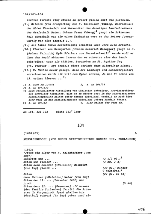 Bericht von Klagen, welche Beat Jakob I. Zurlauben, Landschreiber der Freien Ämter, im sogenannt Präeminenzstreit gegen die Stadt Bremgarten beziehungsweise deren Amtsträger erhob, aufgezeichnet von Heinrich Ludwig Zurlauben