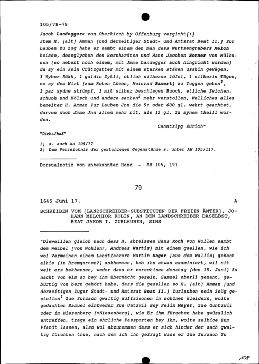 Geständnis der Diebe, die Beat II. Zurlauben bestohlen hatten