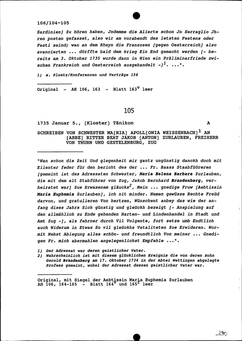 Schreiben von Josef Leodegar Valentin, Ratsherr, Meyer an Beat Jakob Anton Zurlauben, Priester