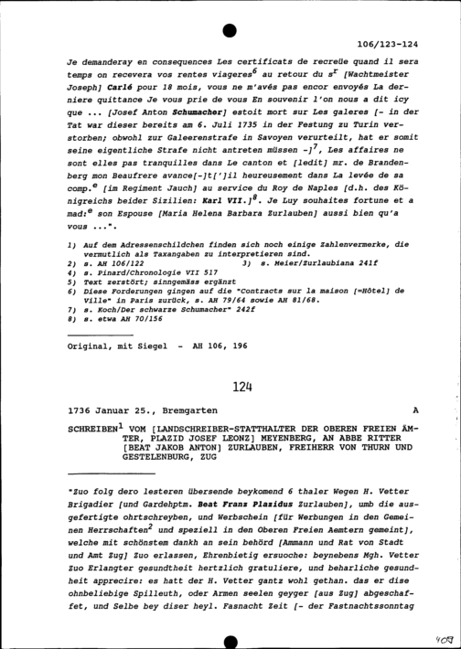 Schreiben von Beat Franz Plazidus Zurlauben, Gardehauptmann und Brigadier, an Beat...