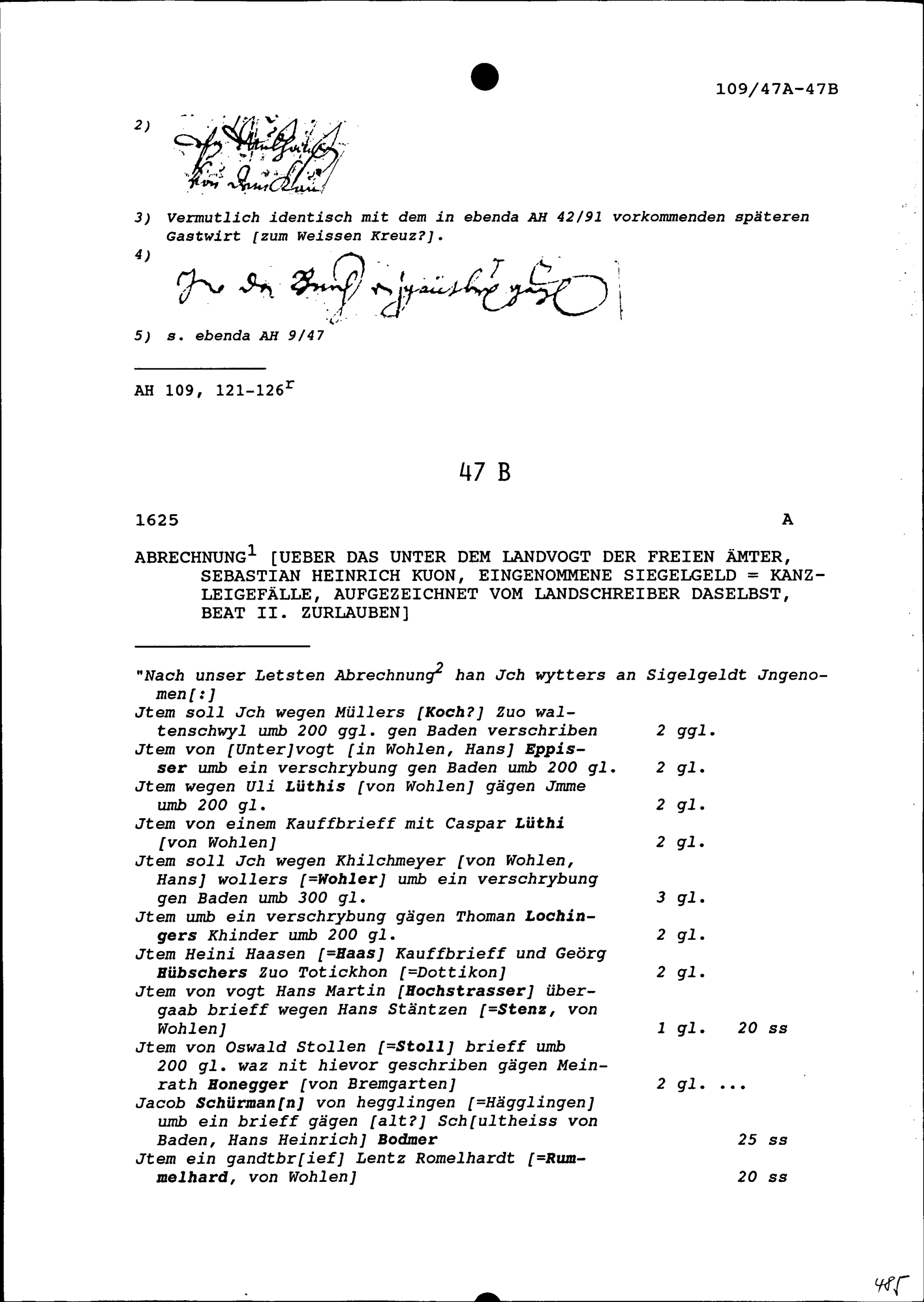 Rechnung für Siegelgeld der Kanzleigefälle unter Sebastian Heinrich Kuon (Kuhn), Landvogt der Freien Ämter und Landrat zu Uri, 1623 bis Johannis 1624, aufgezeichnet von Beat II. Zurlauben, Landschreiber