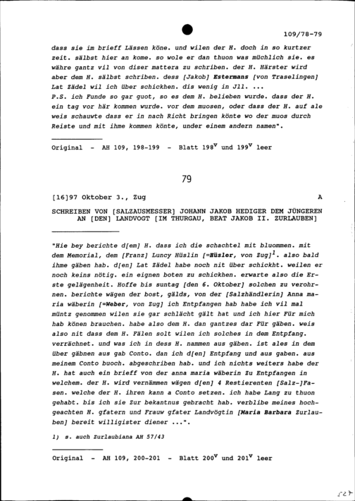 Schreiben von Johann Jakob Hediger, der jüngere, Salzausmesser, an Beat Jakob II. Zurlauben, Landvogt im Thurgau