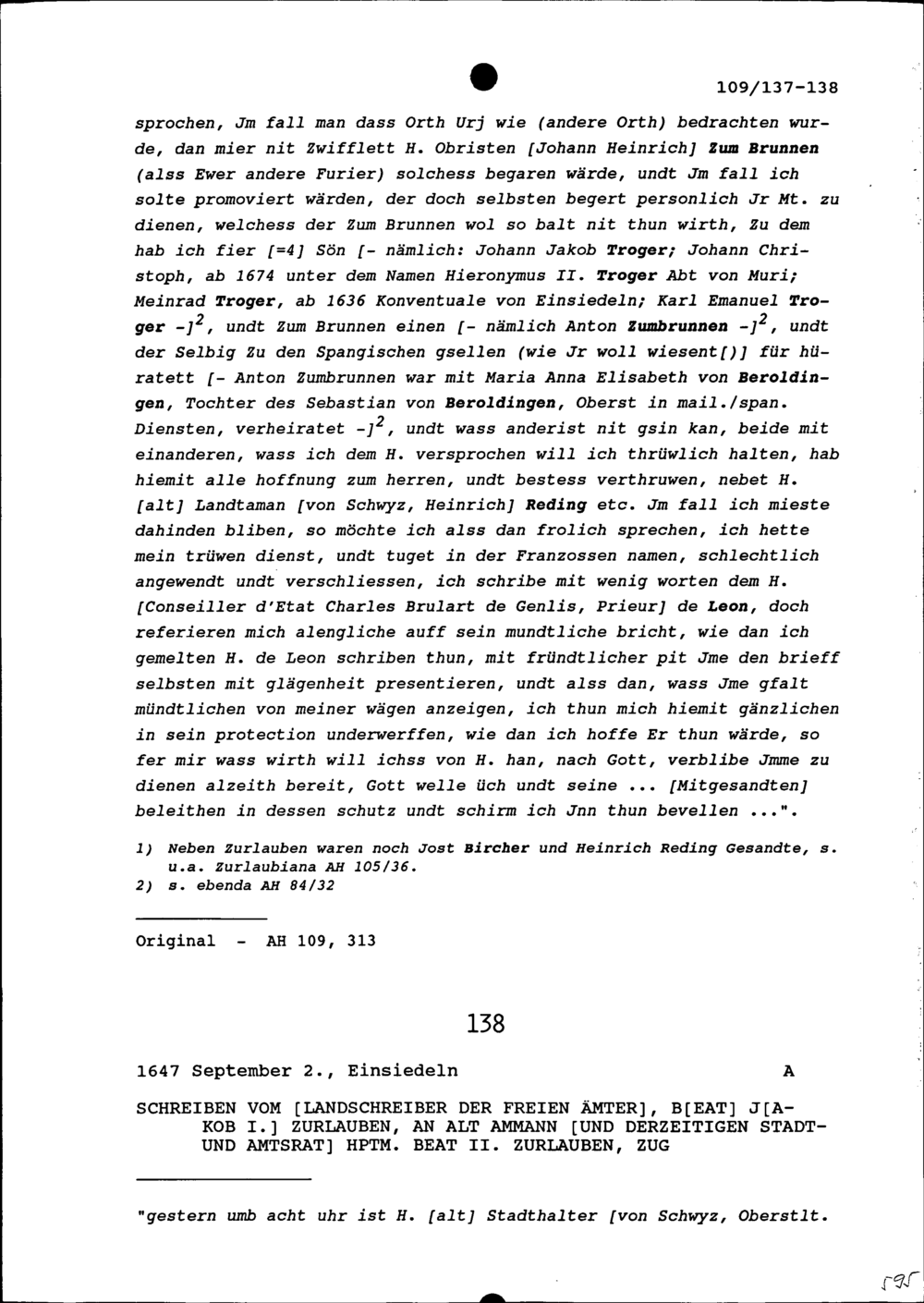 Schreiben von Kaspar Roman Troger, Landrat, an Beat II. Zurlauben, Ammann von Stadt...