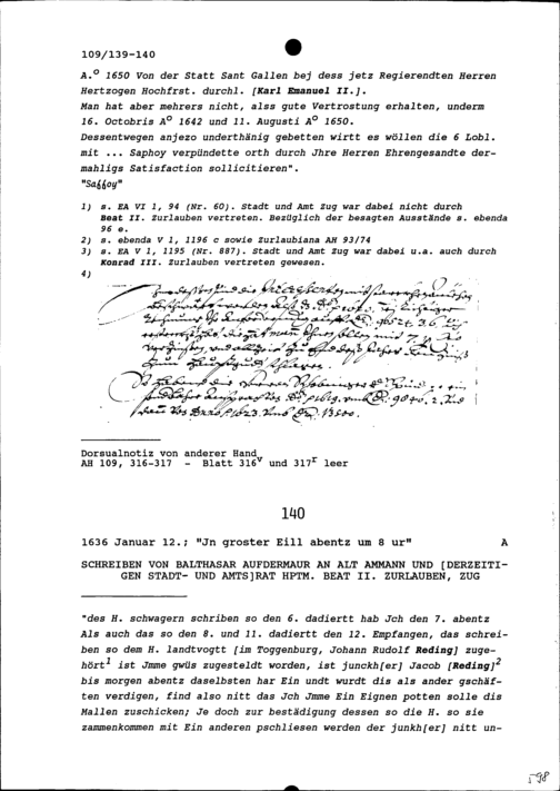 Bericht für die Gesandten der Sechs Katholischen mit Savoyen verbündeten Orte in...