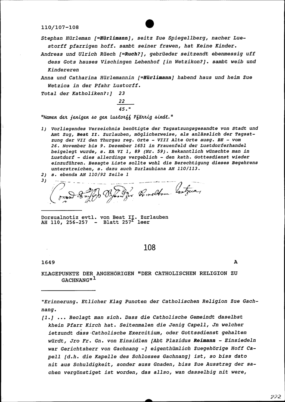 Die nach Lustdorf pfarrgenössigen Katholiken