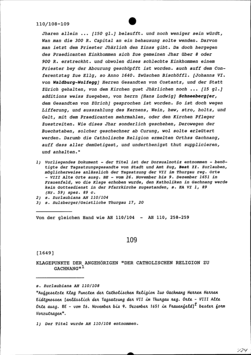 Klagen der Angehörigen der katholischen Religion zu Gachnang