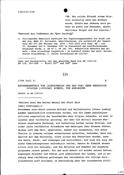 Bericht betreffend Einkommen der Pfarrpfrund zu Lustdorf, die Hans Konrad Wohlich,...