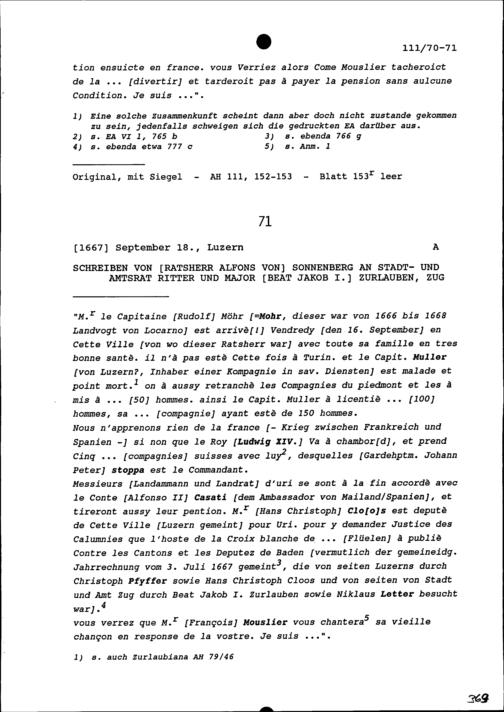 Schreiben von Alfons von Sonnenberg, Ratsherr, an Beat Jakob I. Zurlauben, Statthalter, Zug