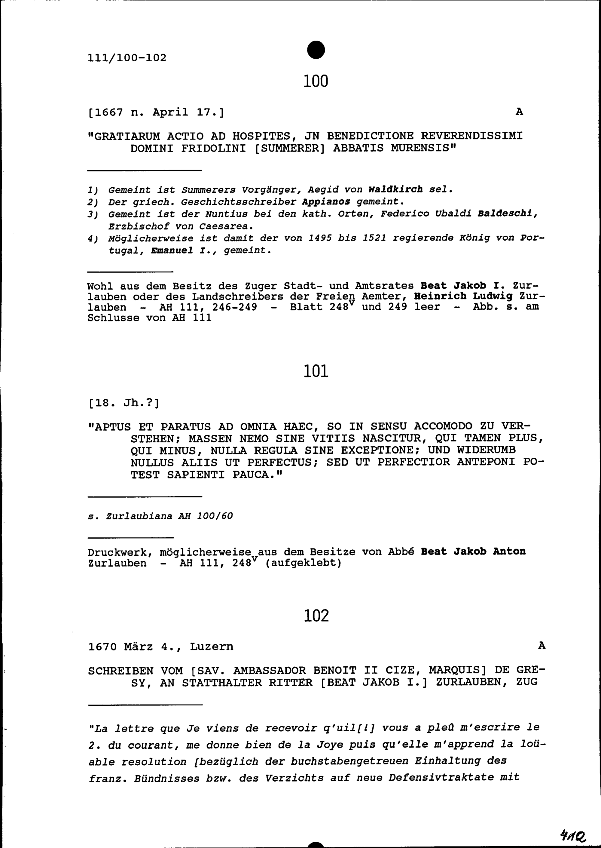 Druck: Aptus et paratus ad omnia haec, so in sensu accomodo zu verstehen, massen nemo sine vitiis nascitur, qui tamen plus qui minus nulla regula sine exceptione und widerumb nullus aliis ut perfectus sed utperfector anteponi potest sapienti pauca