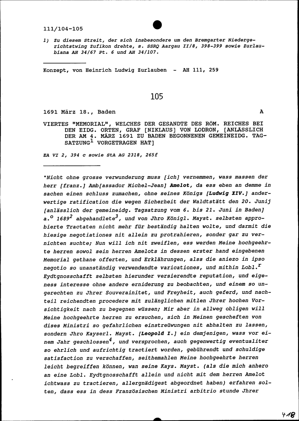 Vorladung der Widersacher von Heinrich Ludwig Zurlauben, Landschreiber der Freien Ämter, vor Schultheiss und Rat Luzern