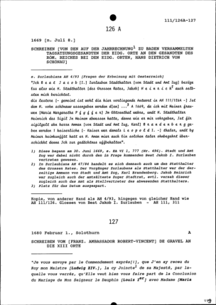 Schreiben von Robert-Vincent de Gravel, Ambassador von Frankreich, an die Dreizehn Orte