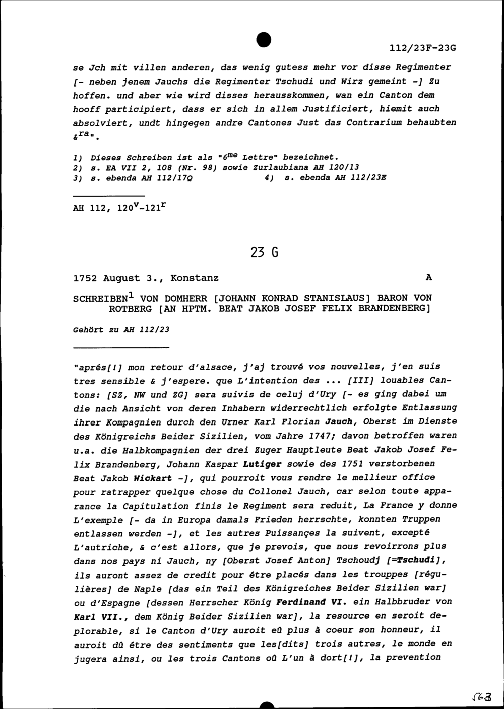 Schreiben von Josef Martin Fridolin Brand, Landrat Uri und Gardehauptmann, an Beat...