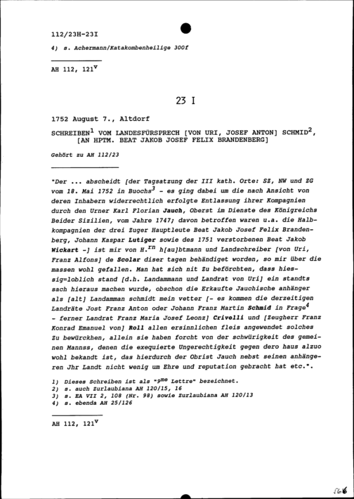 Schreiben von Christian Leonz Andermatt, Chorherr am Stifte Sankt Johann in Konstanz, an Beat Jakob Josef Felix Brandenberg, Hauptmann
