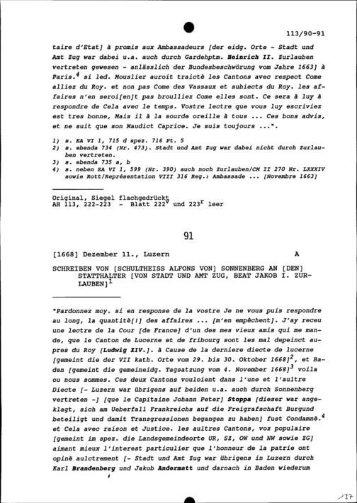 Schreiben von Alfons von Sonnenberg, Ratsherr, an Beat Jakob I. Zurlauben, Stadt-...