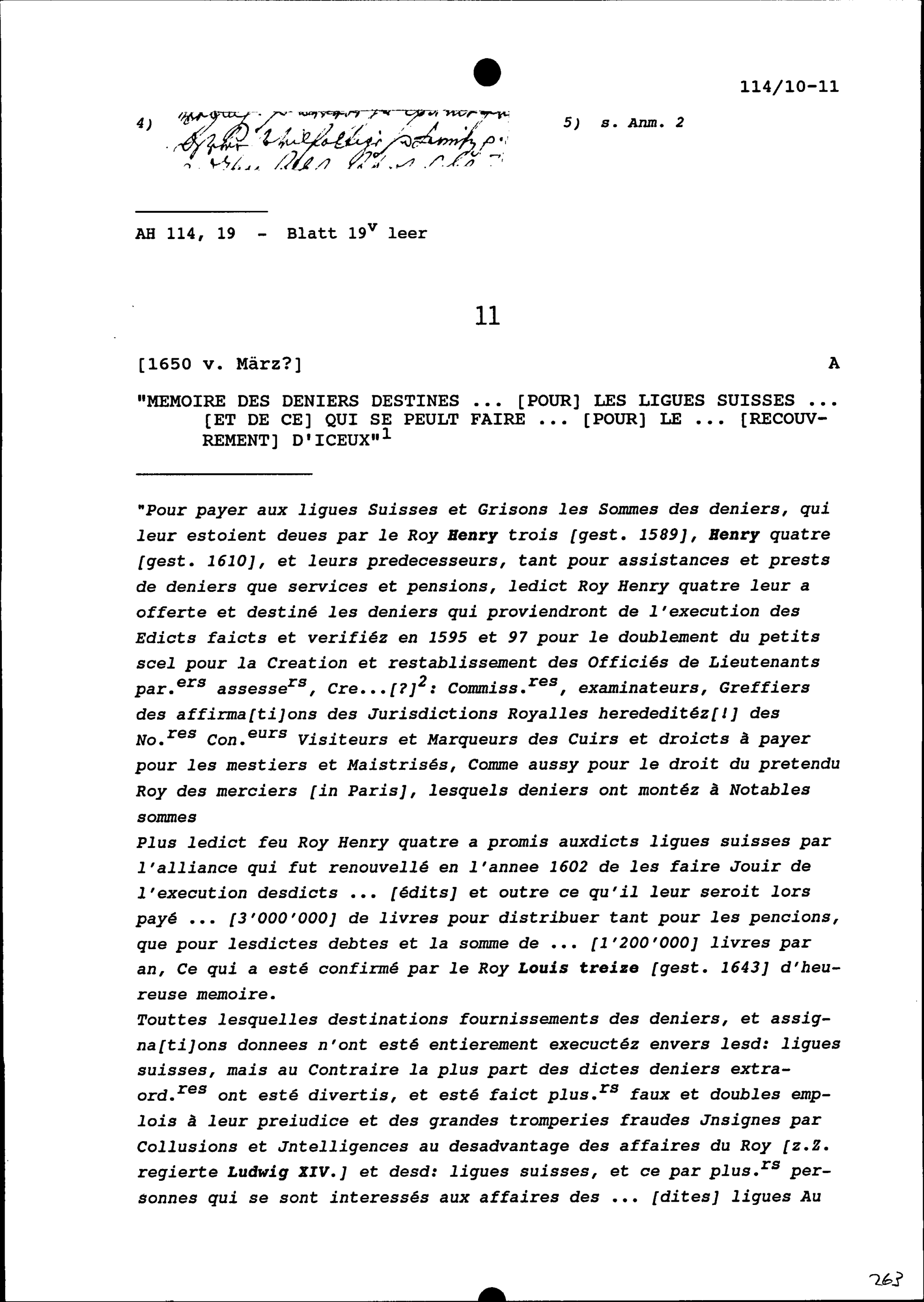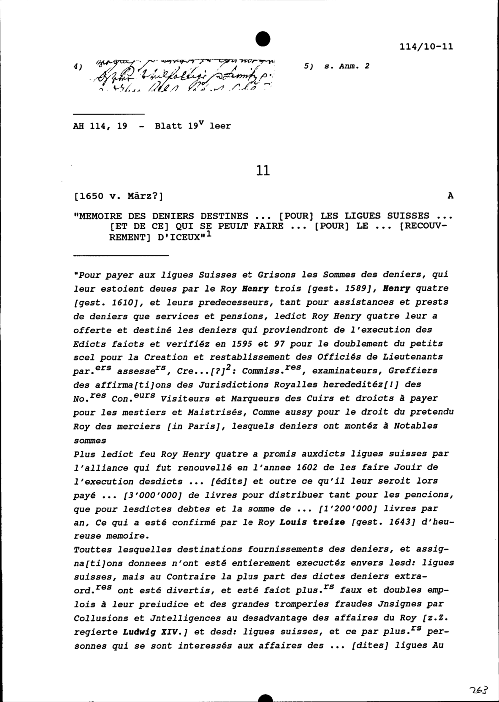 Bericht von Beat II. Zurlauben, Stadt- und Amtrat Zug, unter anderem bezüglich der ausstehenden französischen Pensionen, der Wiederaufrichtung der Neutralität der Freigrafschaft Burgund sowie der Erneuerung des französischen Bündnisses