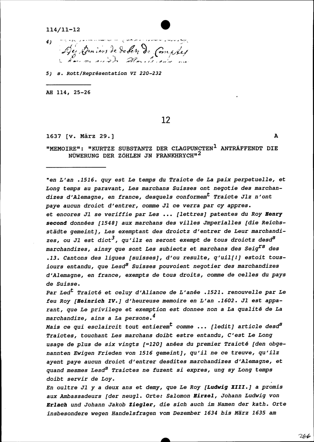 Notiz betreffend die Pensionen für die eidgenössischen Orte und deren Eintreibun...