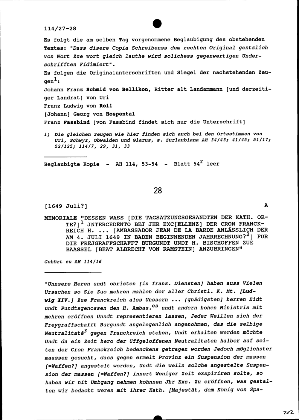 Ortsstimme von Nidwalden für Heinrich Ludwig Zurlauben, Landschreiber, bezüglich der Landschreiberei der Freien Ämter