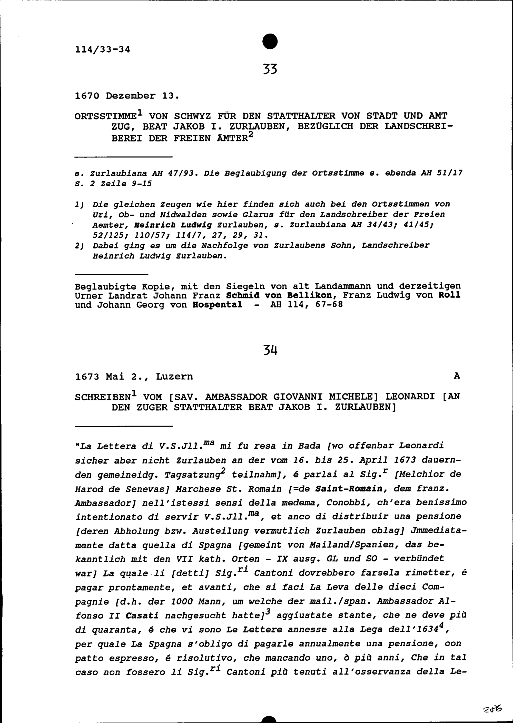 Schreiben von Giovanni Michele Leonardi, Ambassador von Savoyen, an Beat Jakob I. Zurlauben, Statthalter Zug
