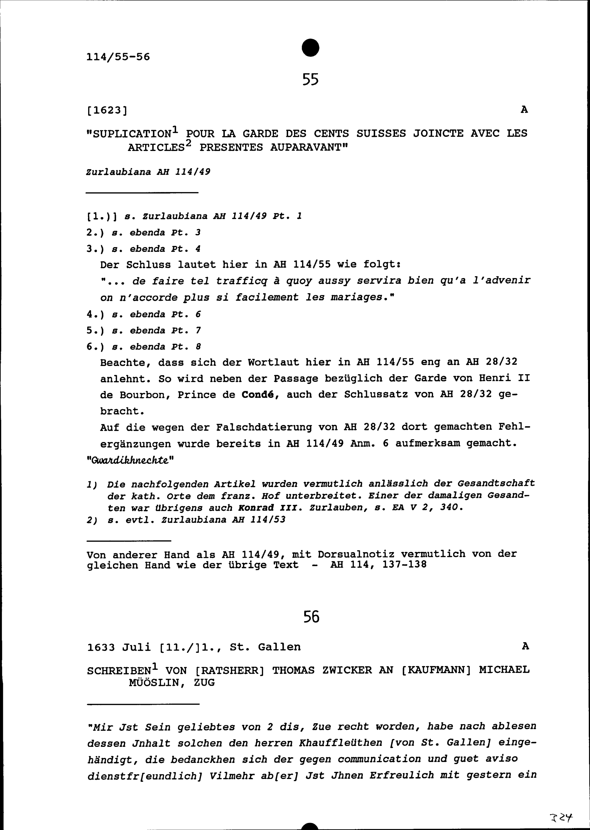 Schreiben von Thomas Zwicker, Ratsherr, an Michael Müöslin, Kaufmann, Zug